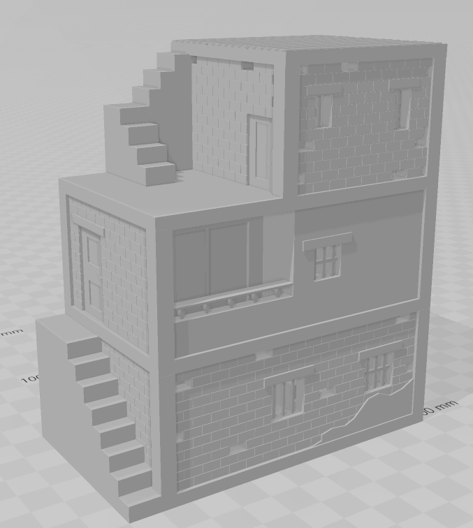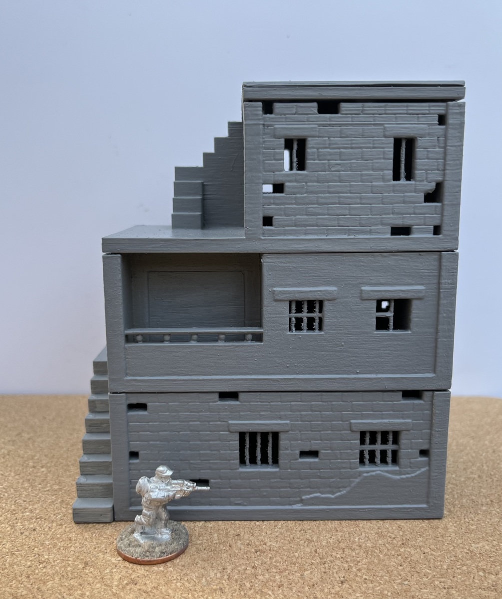 Most shanty/improvised buildings for wargames are designed with corrugated metal sheets as the main construction material. But this does not always reflect reality - in the Middle East, South America and other parts of the world, such buildings tend to be concrete or brick built, using cheap but effective materials. This is the second in a series of designs I have created to represent this on a modern wargaming tabletop battlefield.